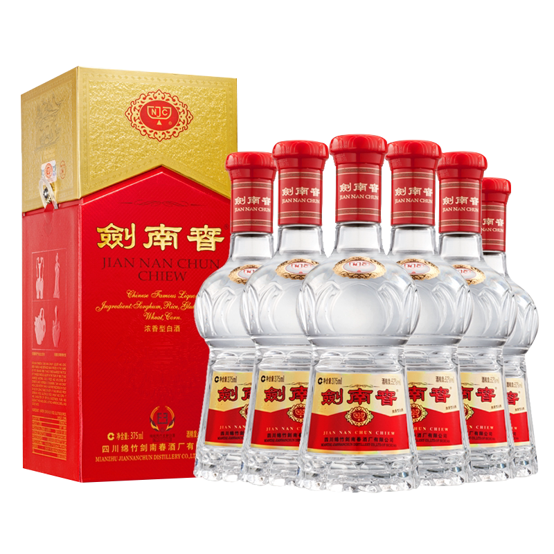 375mL原箱 6瓶 剑南春 52度375mL 整箱浓香型白酒 水晶剑