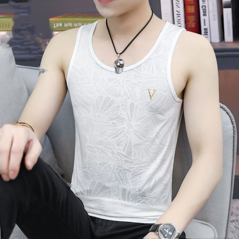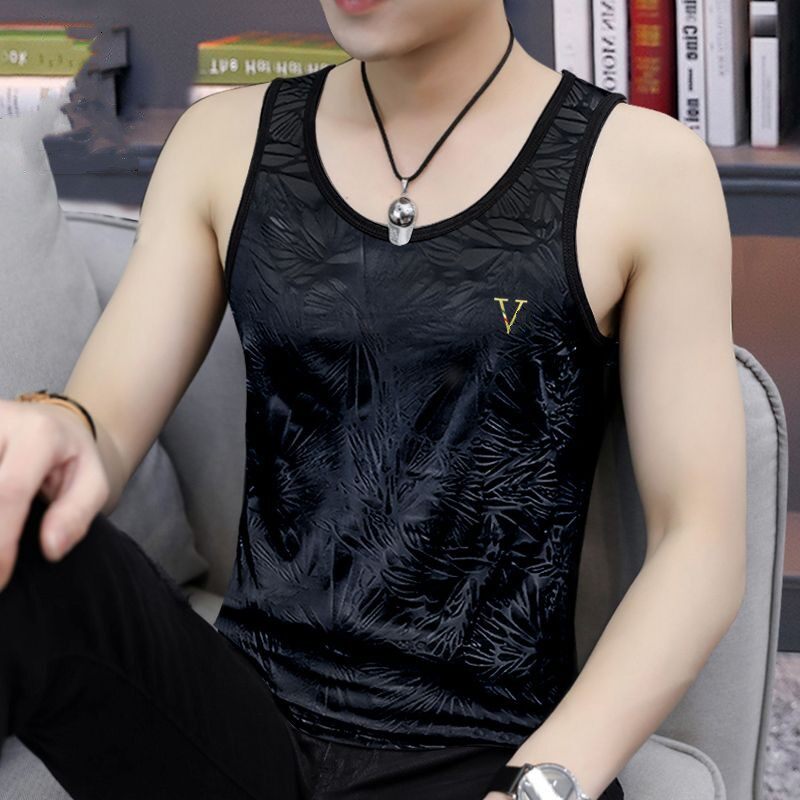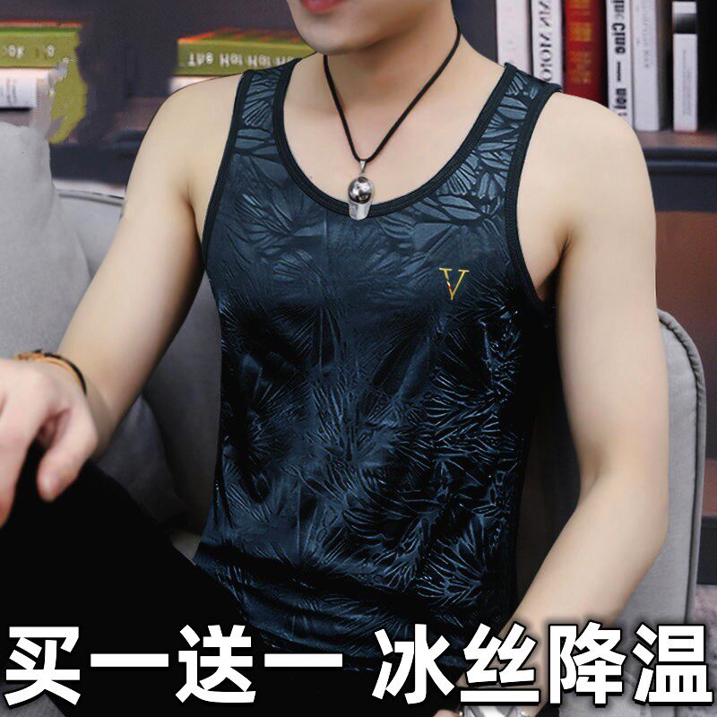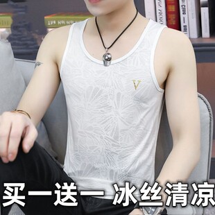 型运动健身潮流个性 夏季 修身 冰丝背心坎肩t恤无袖 圆领打底 男士