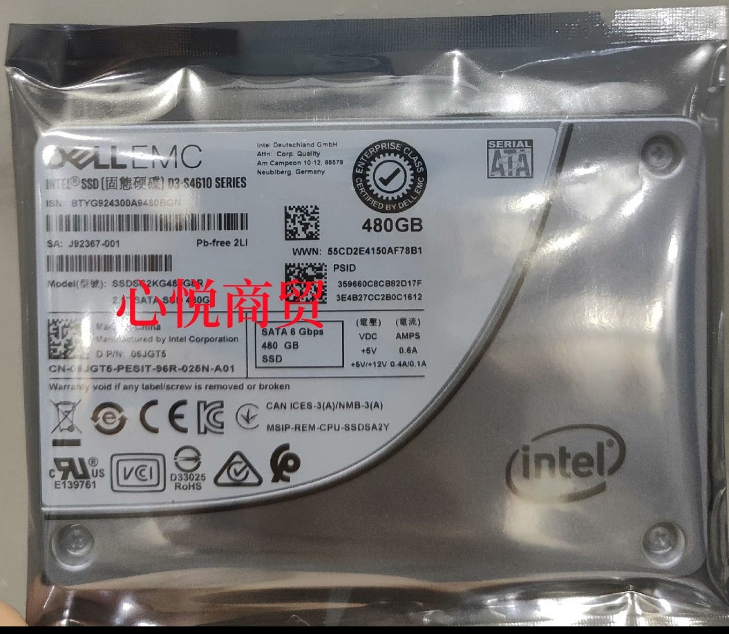 S4610 服务器 DELL戴尔 SATA 06JGT5 SSD固态硬盘480G 6gb EMC