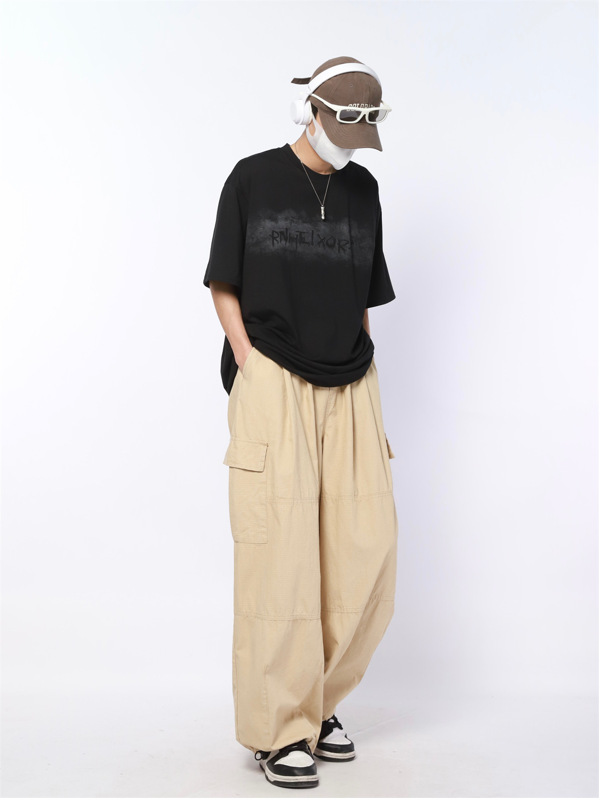 男女速干裤 妈个鸡妈 宽松休闲裤 裤 子潮 ins日系阔腿复古多口袋工装