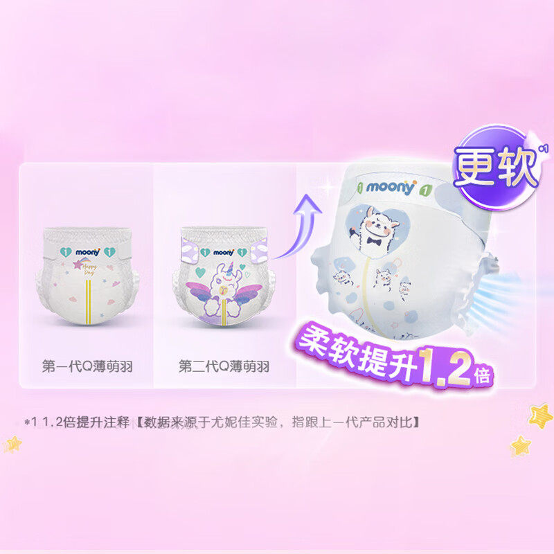 L46 moony尤妮佳Q薄萌羽小羊驼超薄透气纸尿裤 M56 S72 XL40 NB76
