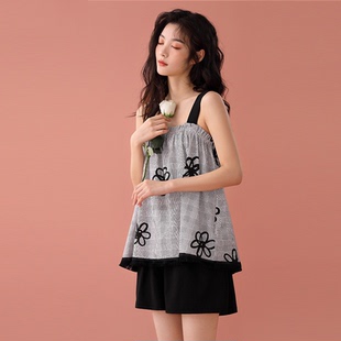 两件套夏天纯棉甜美女生少女家居服 背心吊带短裤 女士睡衣夏季 薄款