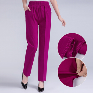 高腰直筒裤 妈妈裤 宽松纯棉薄款 弹力大码 夏季 休闲裤 中老年女士长裤