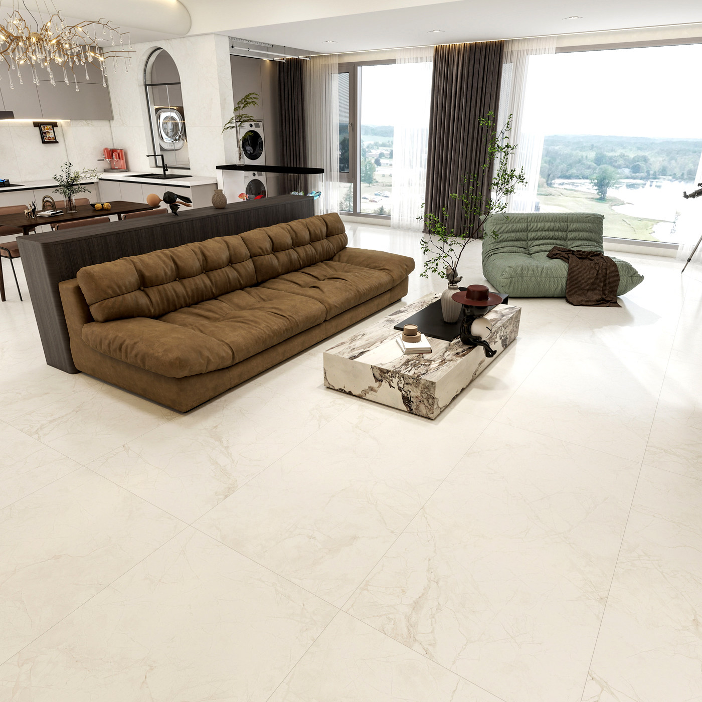 寒江雪柔光大理石瓷砖600x1200客厅卫生间地砖厨房墙地板砖奶油白