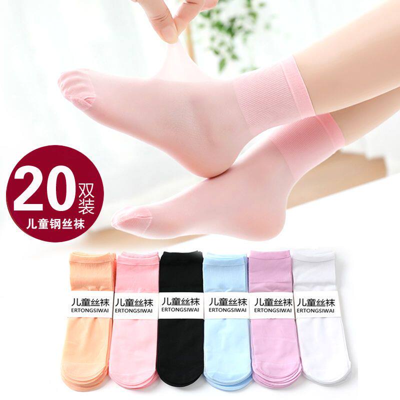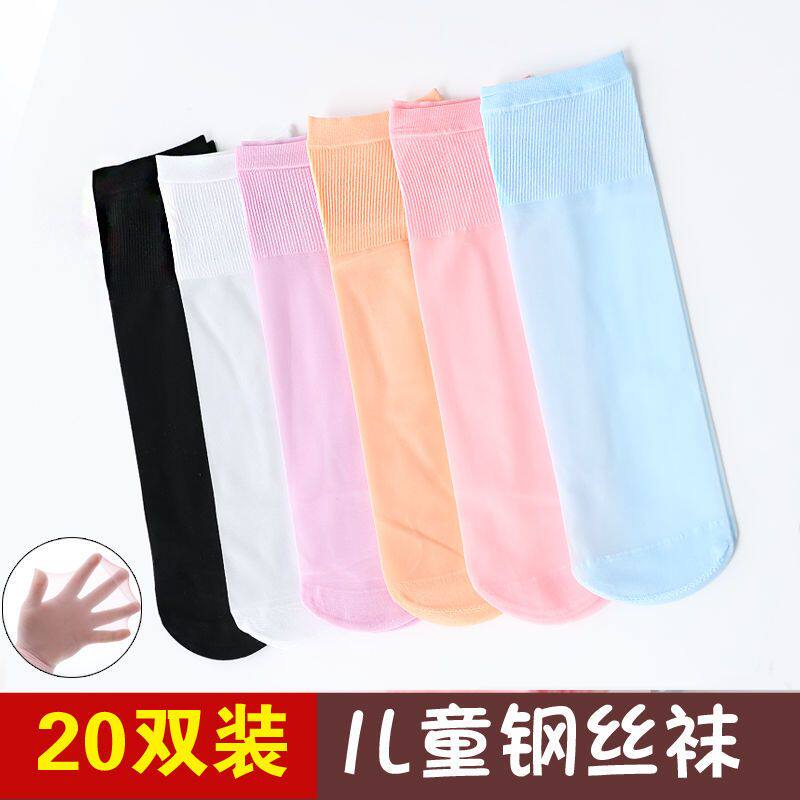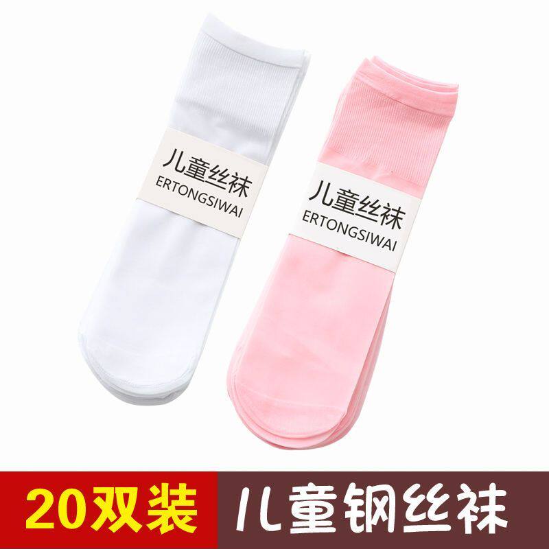 儿童袜子夏季 男孩女童宝宝丝袜白色短袜中大童小孩中筒水晶袜 薄款