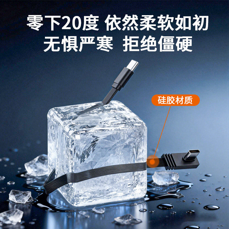 苹果15充电线 适用华为荣耀小米手机平板 柔软双type c数据线弯头安卓扁平车载充电器宝100w超级快充线短线