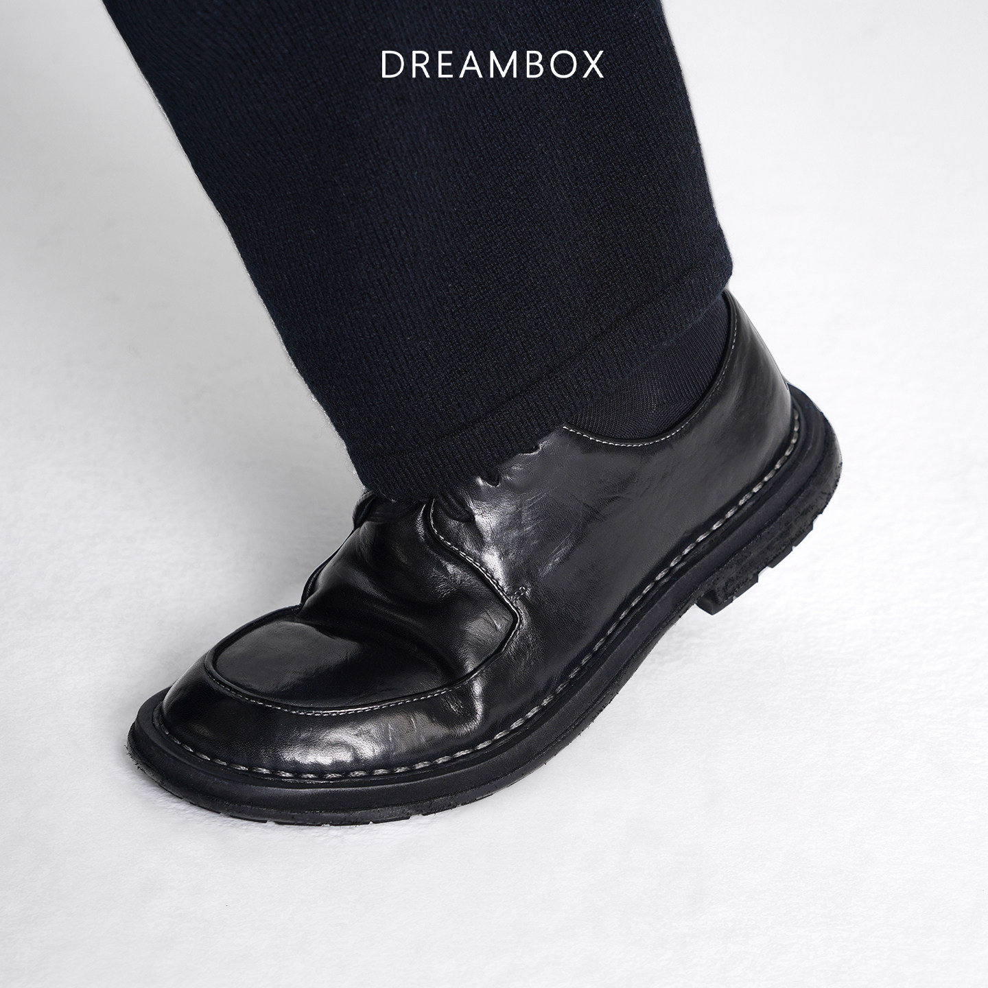 休闲皮鞋 真皮褶皱皮鞋 意大利进口胎牛皮一脚蹬乐福鞋 AMBSOM