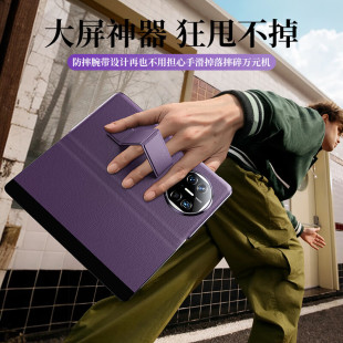 适用华为matex5手机壳新款 全包真皮腕带支架保护套折叠屏x6防摔保护壳mtx3头层牛皮男女外壳高档皮套 X5典藏版