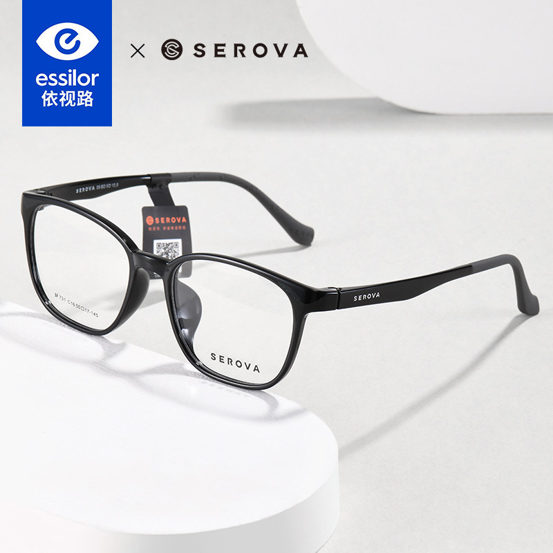 依视路镜片施洛华黑框眼镜近视男防蓝光可配度数高级透色女 SF731