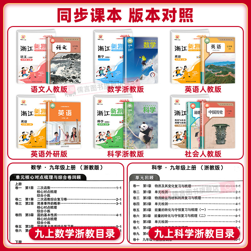 华师各地真题试卷专项训练测试卷子 外研版 2026新版 励耘浙江新期末七八九年级上册语文数学英语科学历史与社会道德与法治人教浙教版