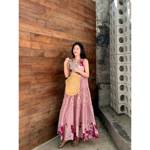 重工定位花4米大摆连衣裙无袖 浪漫花卉 长裙 紫气东来 Floating