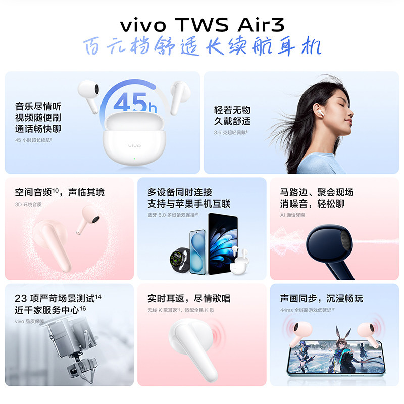 vivotwsair3蓝牙耳机 Air3真无线耳机twsair2半入耳新品 vivo TWS