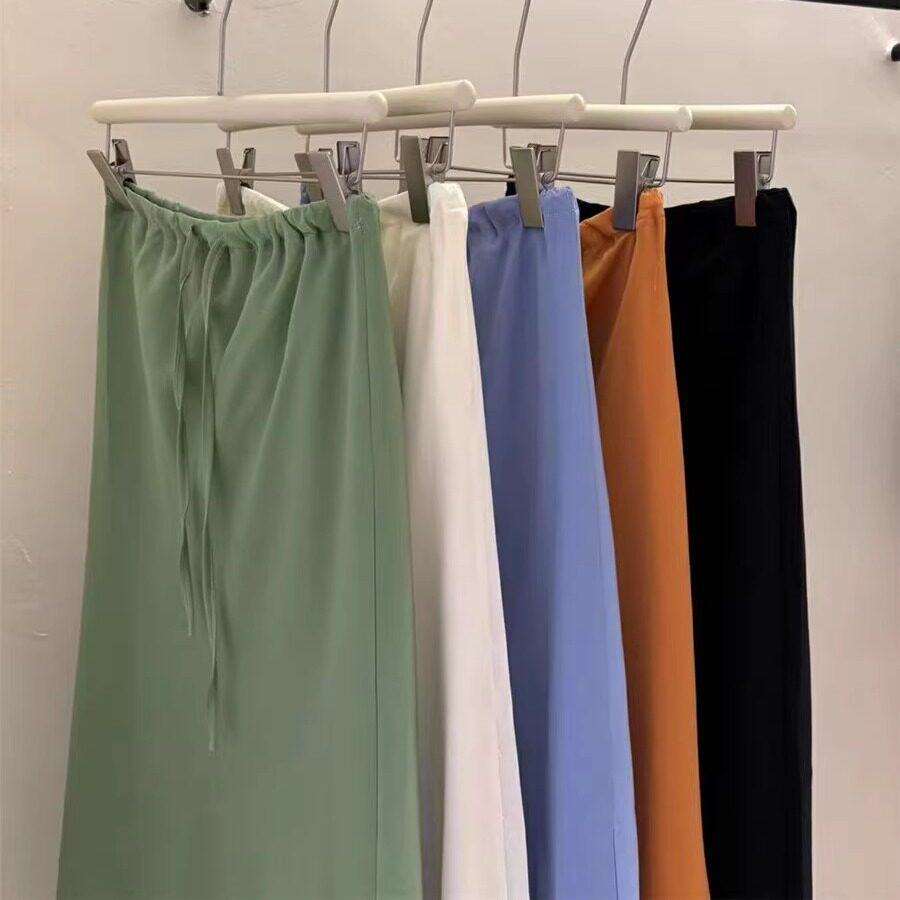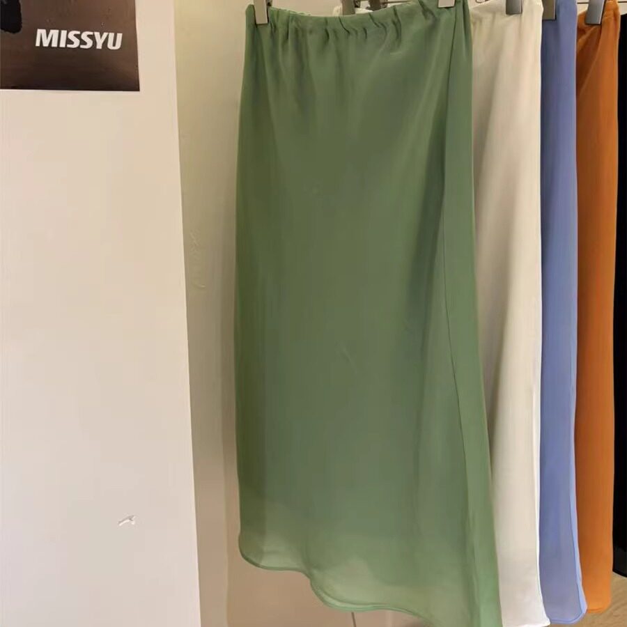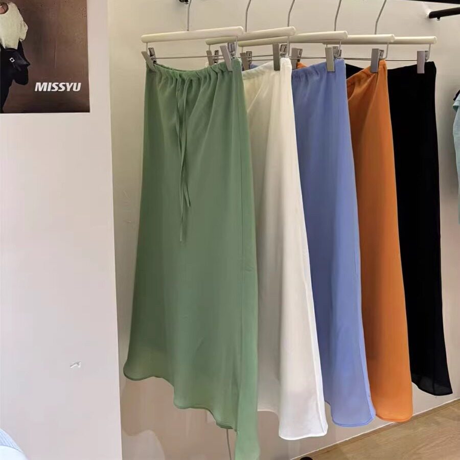 2025夏季 显瘦中长裙高腰欧货裙子遮肉600 彩色抽绳缎面鱼尾裙时尚