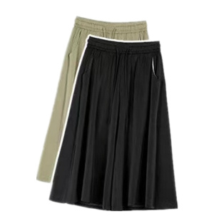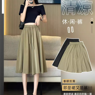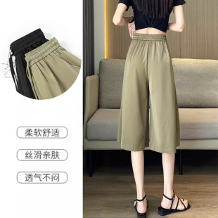 新款 女夏季 胖mm超大码 显瘦阔腿裤 裙 冰丝薄款 宽松休闲清凉裤 七分裤