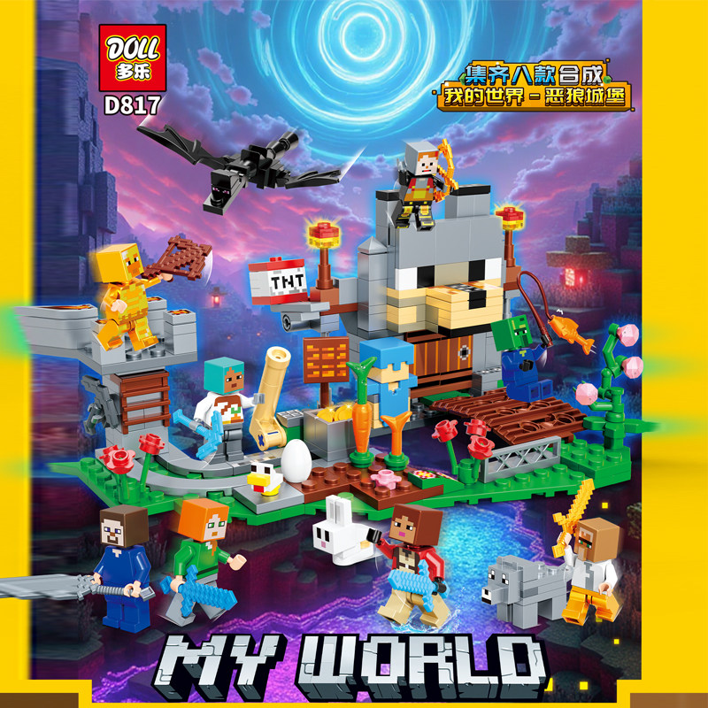 六一节礼物玩具 世界积木恶狼城堡大场景方块儿童拼装 新品 现货我