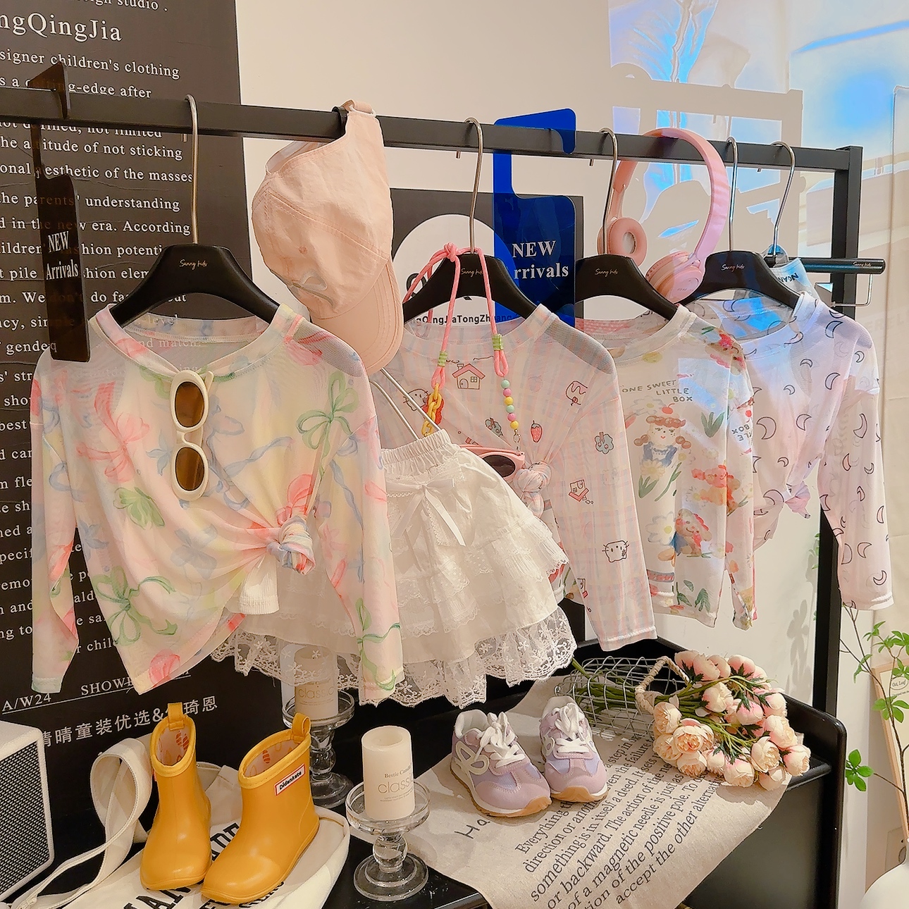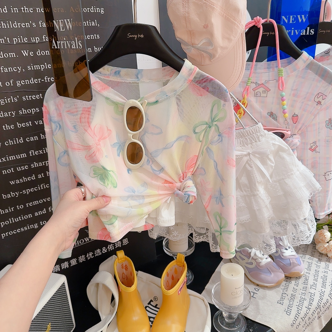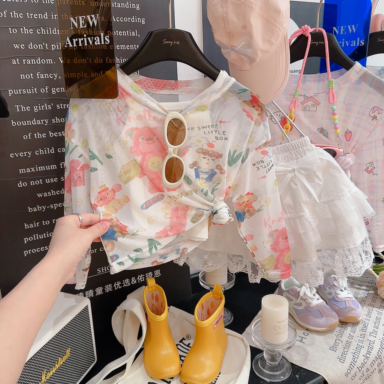 NG010辉 新款 宠粉 女童印花百搭遮阳吊带网纱两件套上衣2025夏季