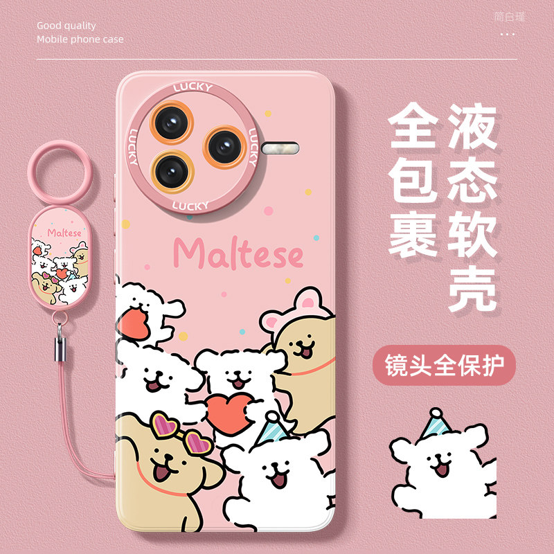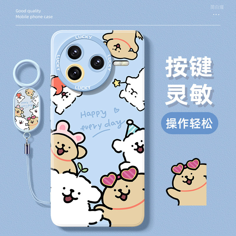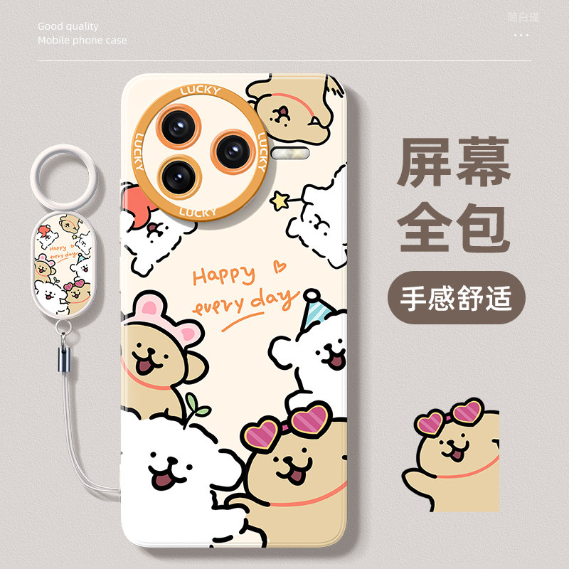 适用红米k80手机壳新款 防摔硅胶外壳环绕小狗 2025高级感小米红米k80pro镜头全包redmi女士带挂绳k80pro冠军版