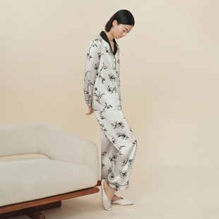 花逸 两件套春秋 万事利 Wensli真丝睡衣100%桑蚕丝女士家居服套装
