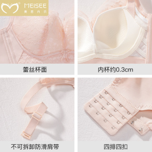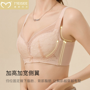 美思内衣女大胸显小薄款 无钢圈收副乳防下垂性感蕾丝调整型文胸罩