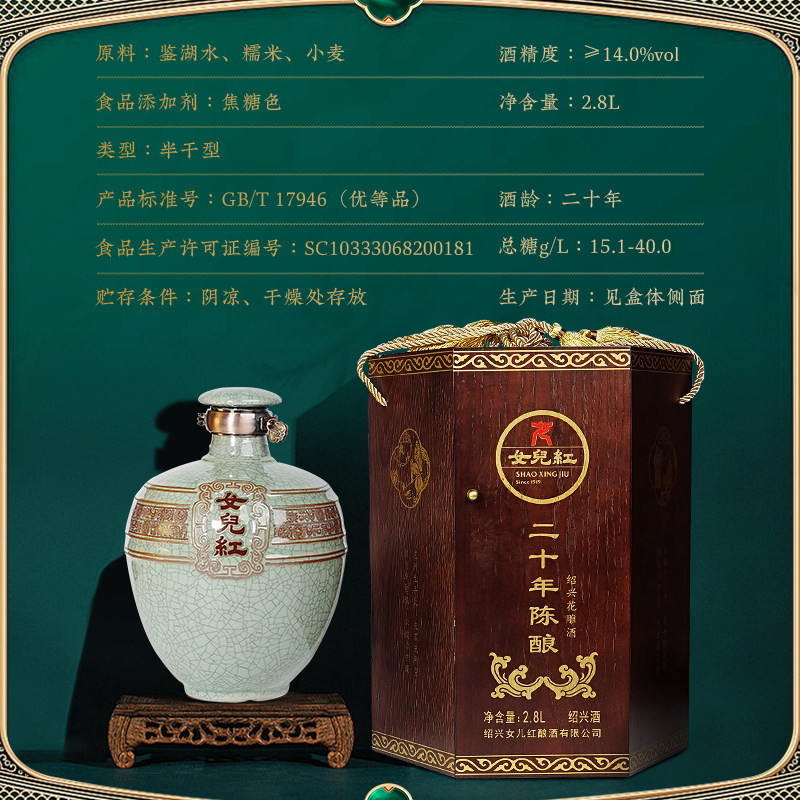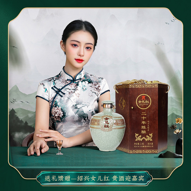 正宗女儿红绍兴黄酒二十年陈酿20年花雕酒坛装 节日送礼 2.8L礼盒装
