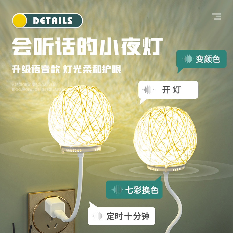 智能语音小夜灯插座带USB快充接口转换器多功能家用卧室睡眠灯