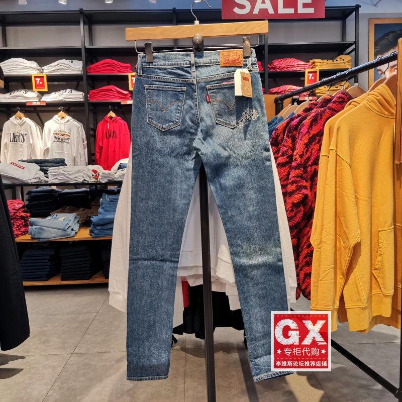 19560 0166 711浅色 正品 紧身提臀刺绣 李维斯 女修身 牛仔 levis