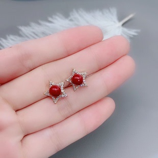 朱砂耳钉防过敏转运珠耳钉玫瑰花耳坠女时尚 百搭气质耳环饰品新年