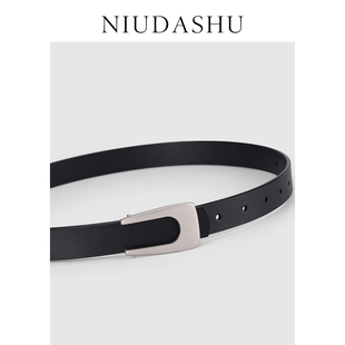 平滑扣配牛仔裤 饰简约百搭韩版 腰带女黑潮流 皮带女真皮装 秋冬新款