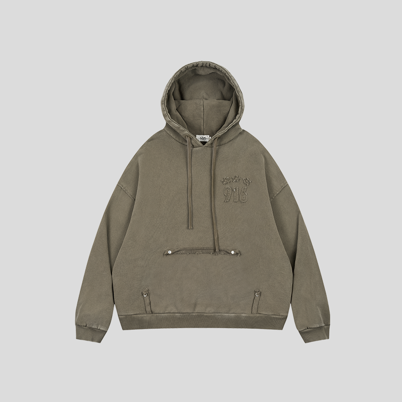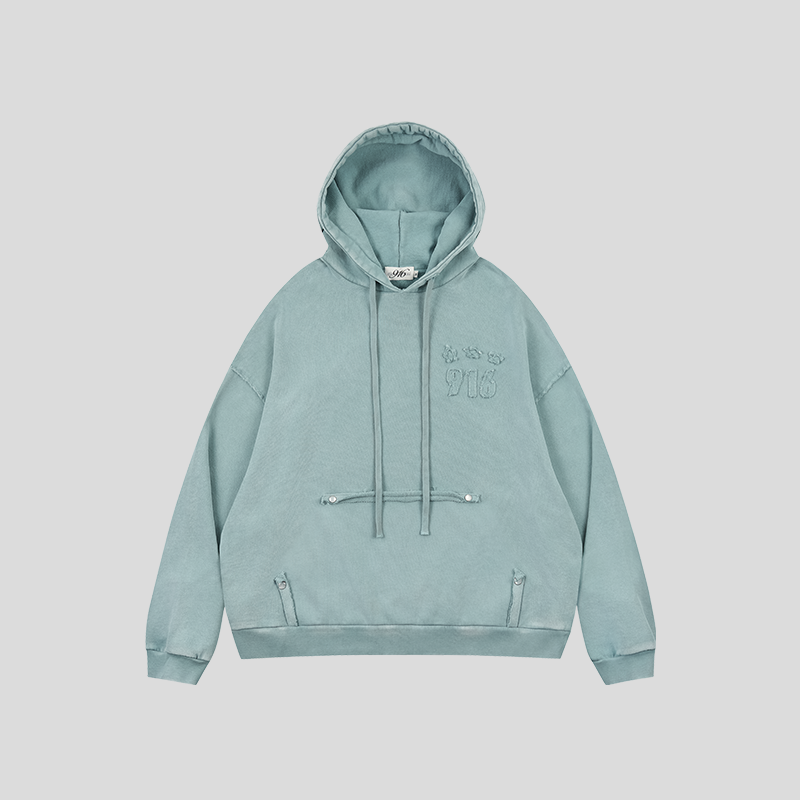 GOODBAI 星星logo水洗连帽毛边oversize卫衣 916