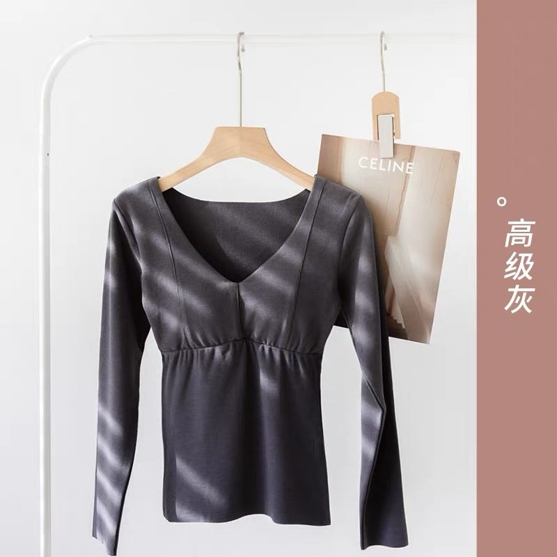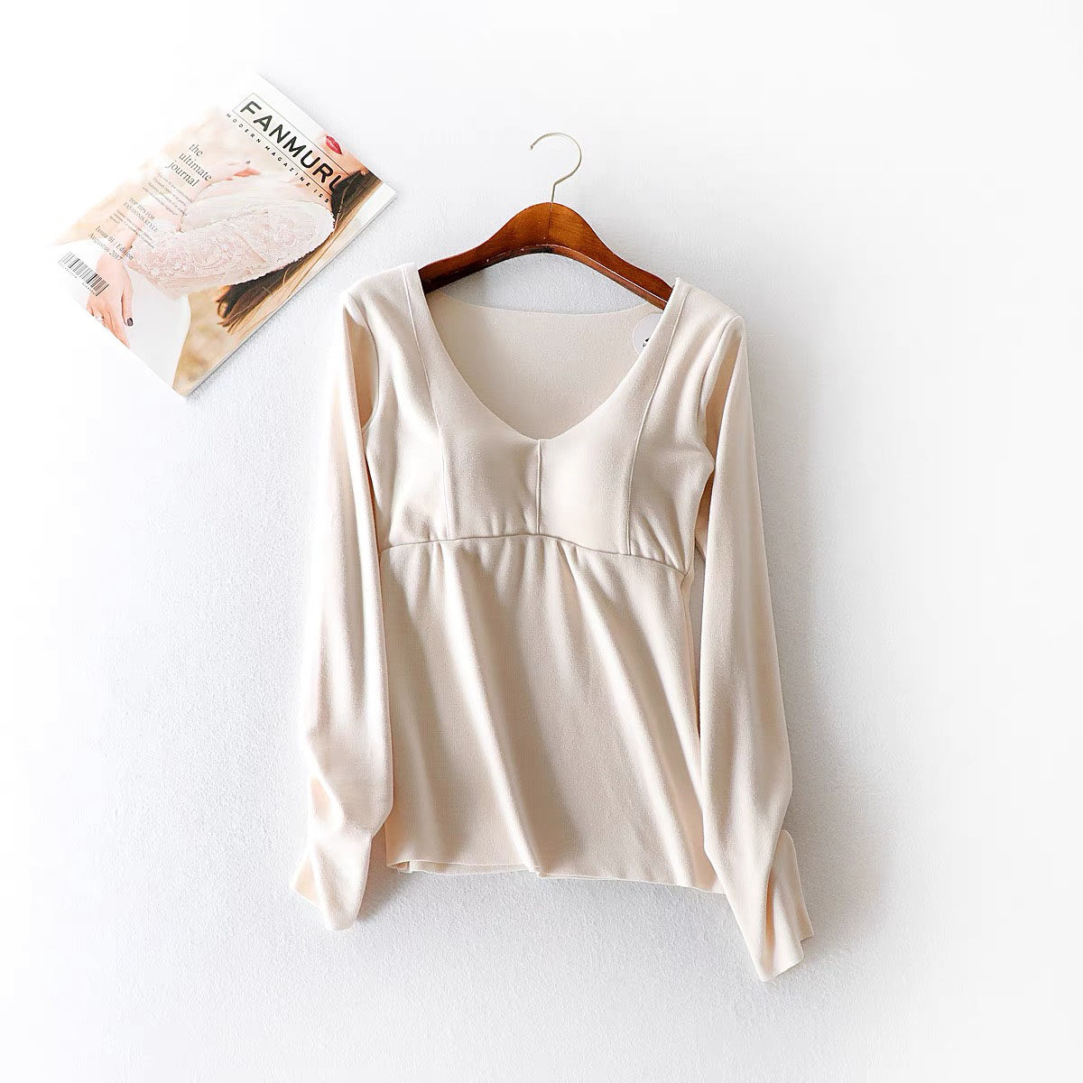 长袖 350g真德绒羊绒蛋白牙签条罩杯打底衫 文胸保暖内衣 不退换