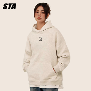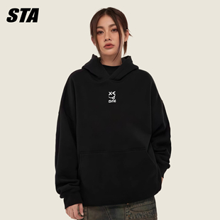 STA旗舰店美式 卡通笑脸连帽卫衣男女潮牌重磅纯棉宽松情侣黑外套
