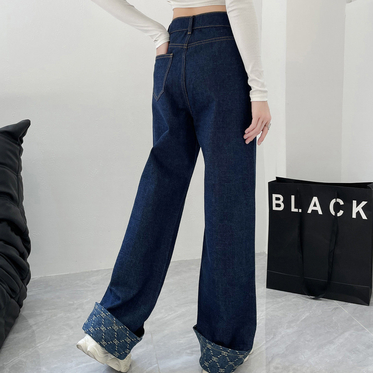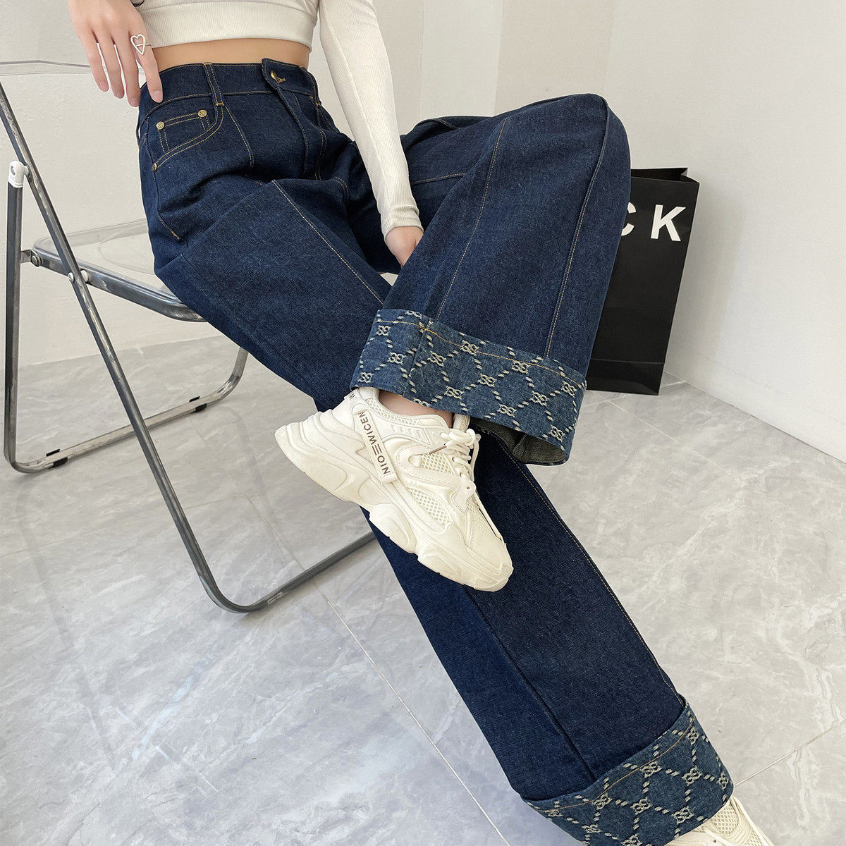 快板加工 宽松休闲阔腿加长牛仔裤 高腰大码 牛仔裤 均码 女装
