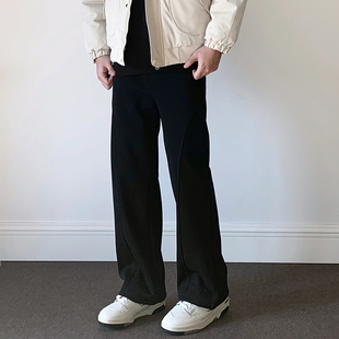 UMSSUSP 男 秋冬纯色加绒加厚保暖解构休闲卫裤 男直筒百搭运动裤