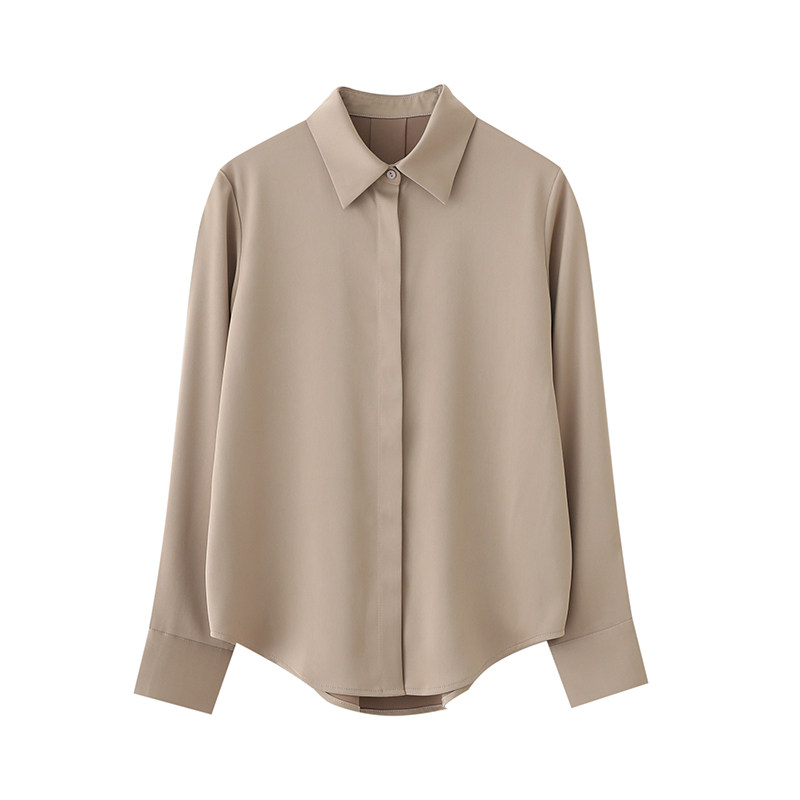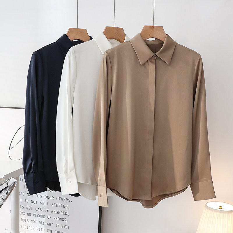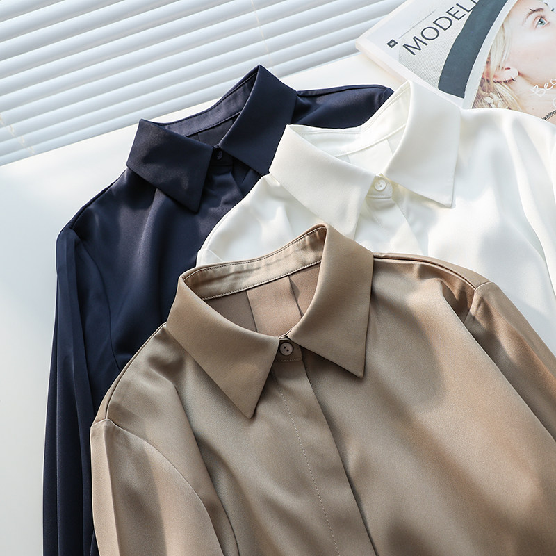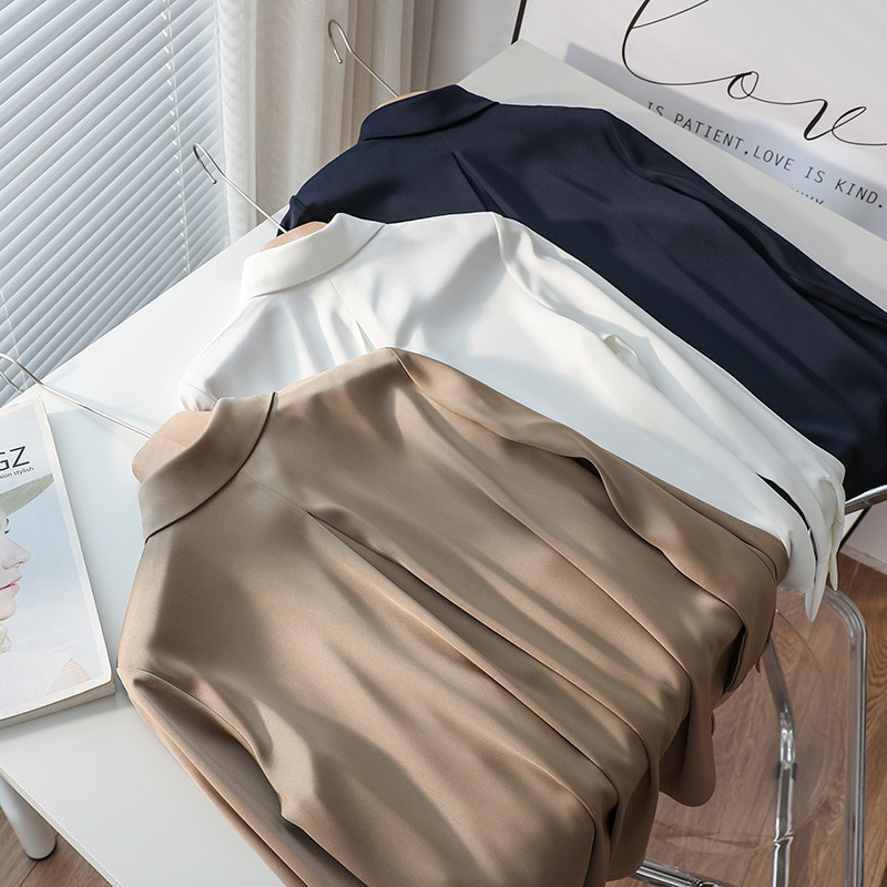 新款 女高级感珠光职业上衣面试衬衣25春季 仿醋酸缎面衬衫 通勤法式