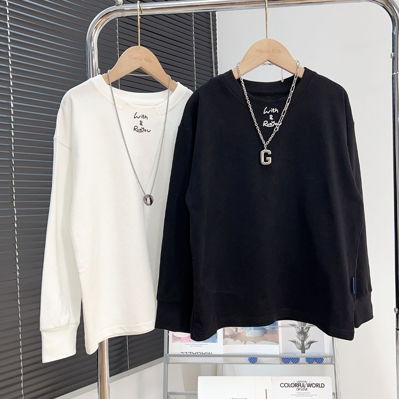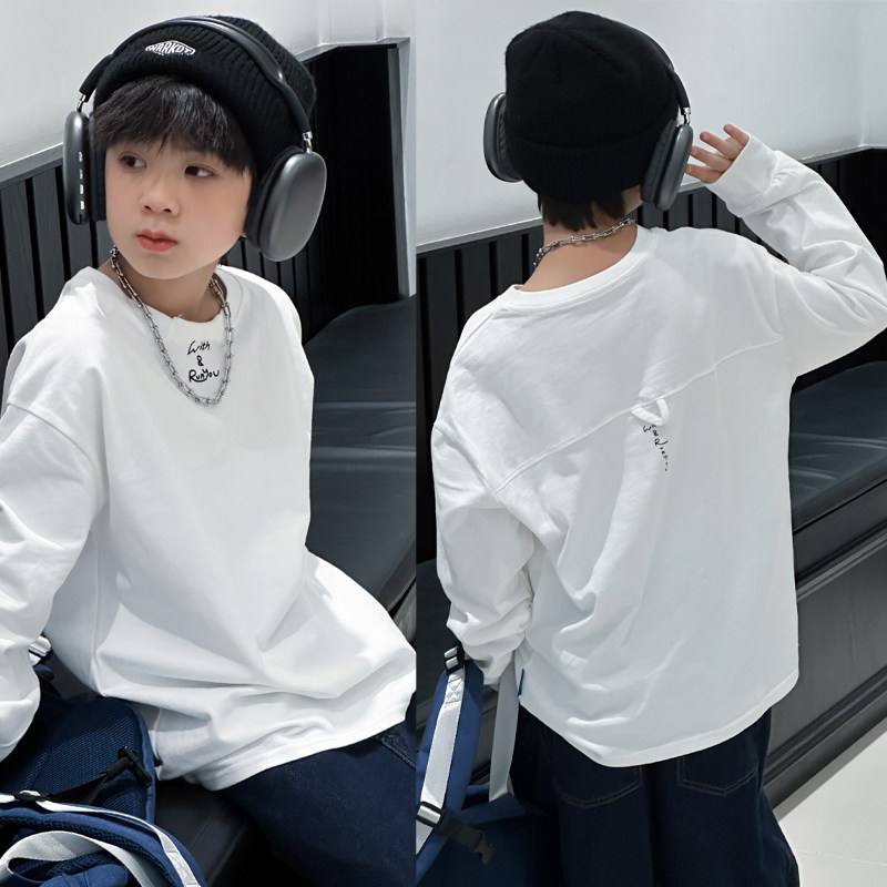 韩版 打底衫 儿童白色洋气内搭上衣 中大童纯棉长袖 男童t恤2026春装