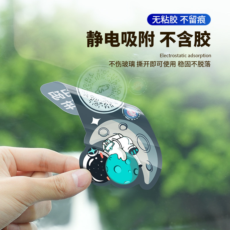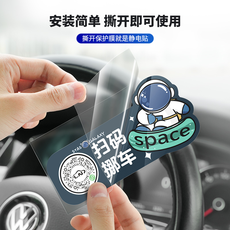 牌 移车卡宇航员临时停车号码 车载扫码 挪车电话牌汽车静电贴二维码