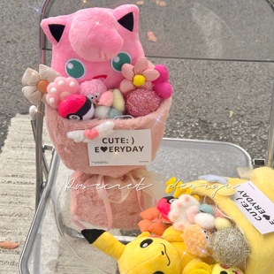 比卡丘卡通玩偶花束宝可梦公仔玩具花创意可爱生日礼物送女友七夕