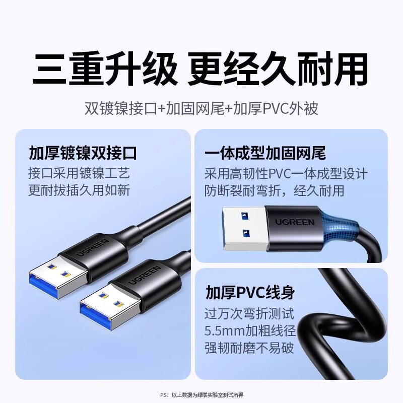 绿联双头usb3.0数据线公对公双公头连接口延长线转换传输移动硬盘盒笔记本电脑散热器供充电机顶盒刷机加长线