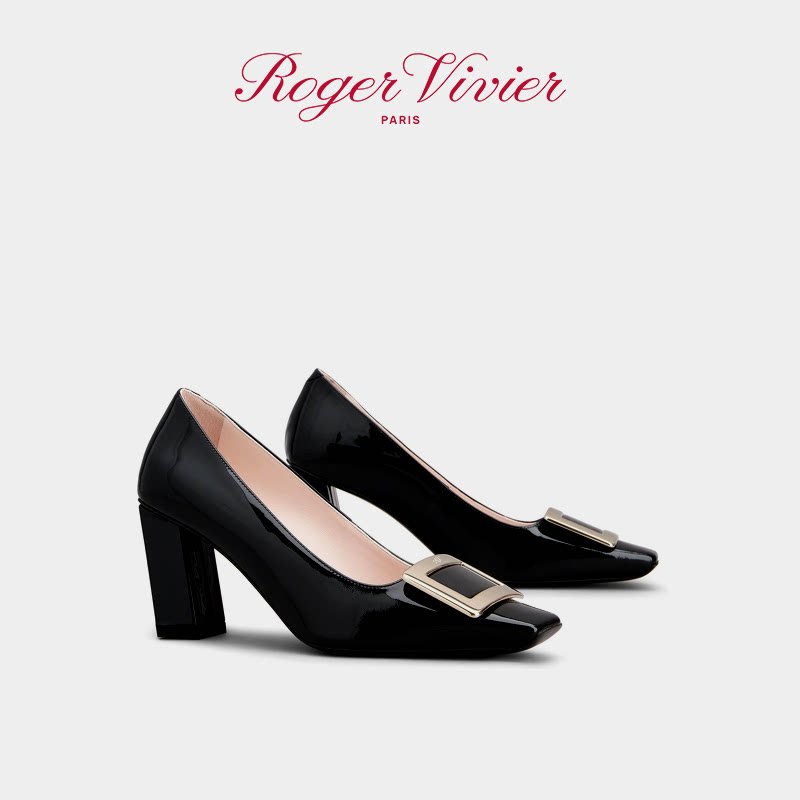 24期免息 Belle Roger RV女鞋 Vivier金属扣漆皮高跟鞋 Vivier
