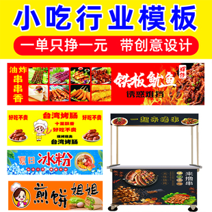 摆摊小吃车自粘贴纸广告喷绘布定制夜市餐车招牌三轮车防水背胶贴