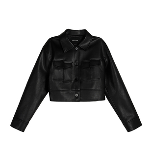 化学少女「朋克乐手」黑色复古加绒皮衣厚外套女美式 机车夹克秋冬