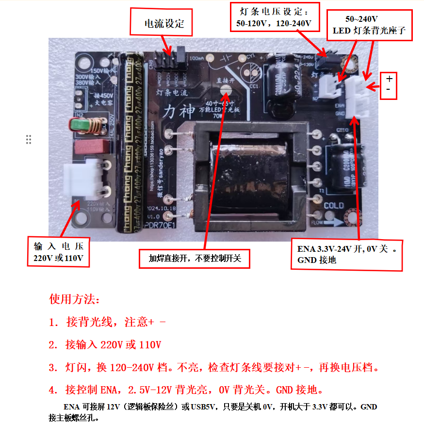 43寸 240V自动适应 75寸电视220V输入万能通用LED背光恒流板30V