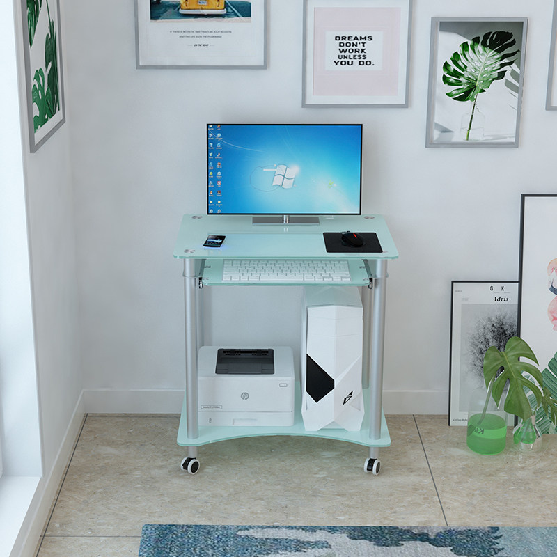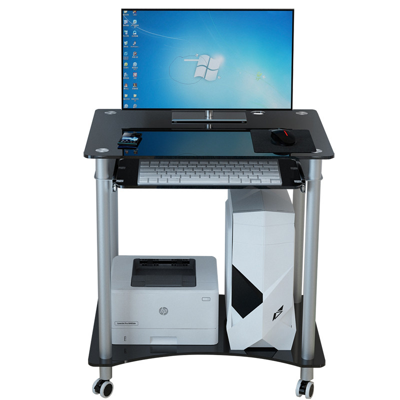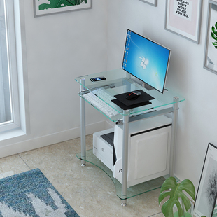 小户型电脑台式 书桌家用简约钢化玻璃台迷你经济型打印机一体桌子