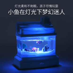 彩珀蓝色电动迷你小鱼缸粉色水族箱捕捞鱼灯光儿童益智玩具男女孩