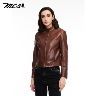 款 MCS女装 休闲真皮衣外套女春季 复古新款 源自万宝路回响宋佳同款