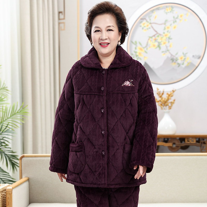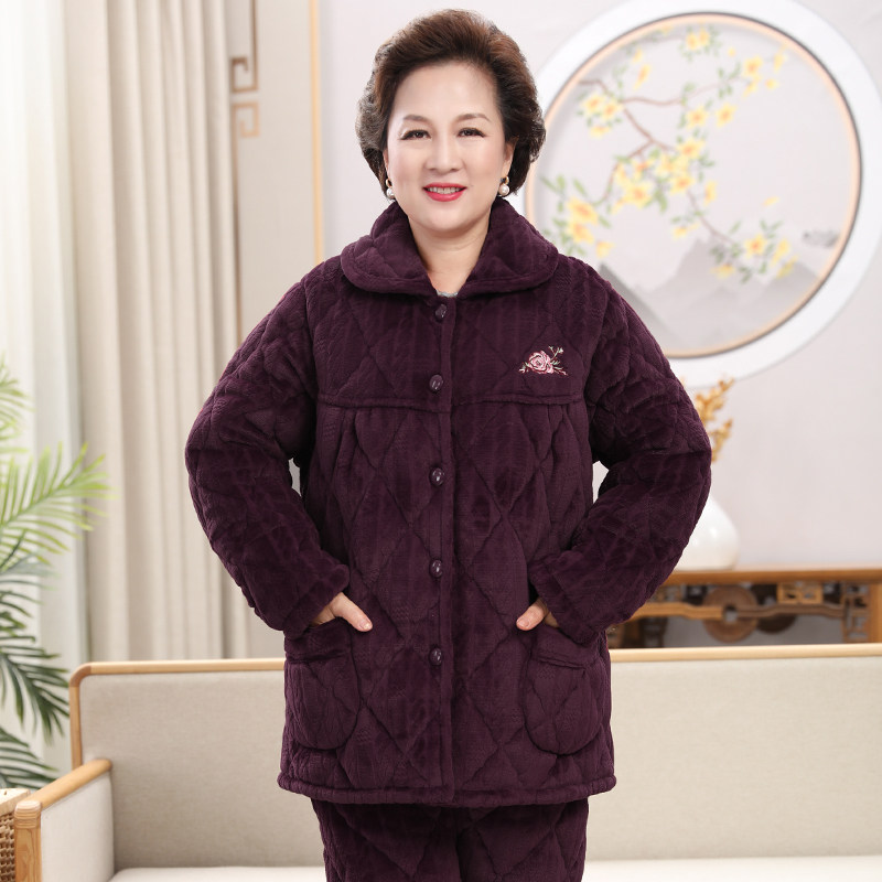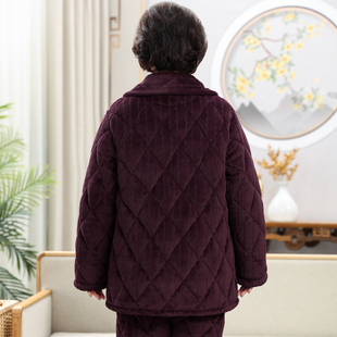 老人睡衣女士秋冬季 中老年人妈妈珊瑚绒夹棉加绒加厚家居服套装