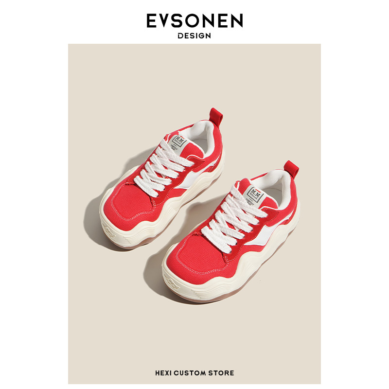 松糕帆布鞋 徐璐赵露思同款 秋冬休闲波浪底增高面包鞋 Evsonen