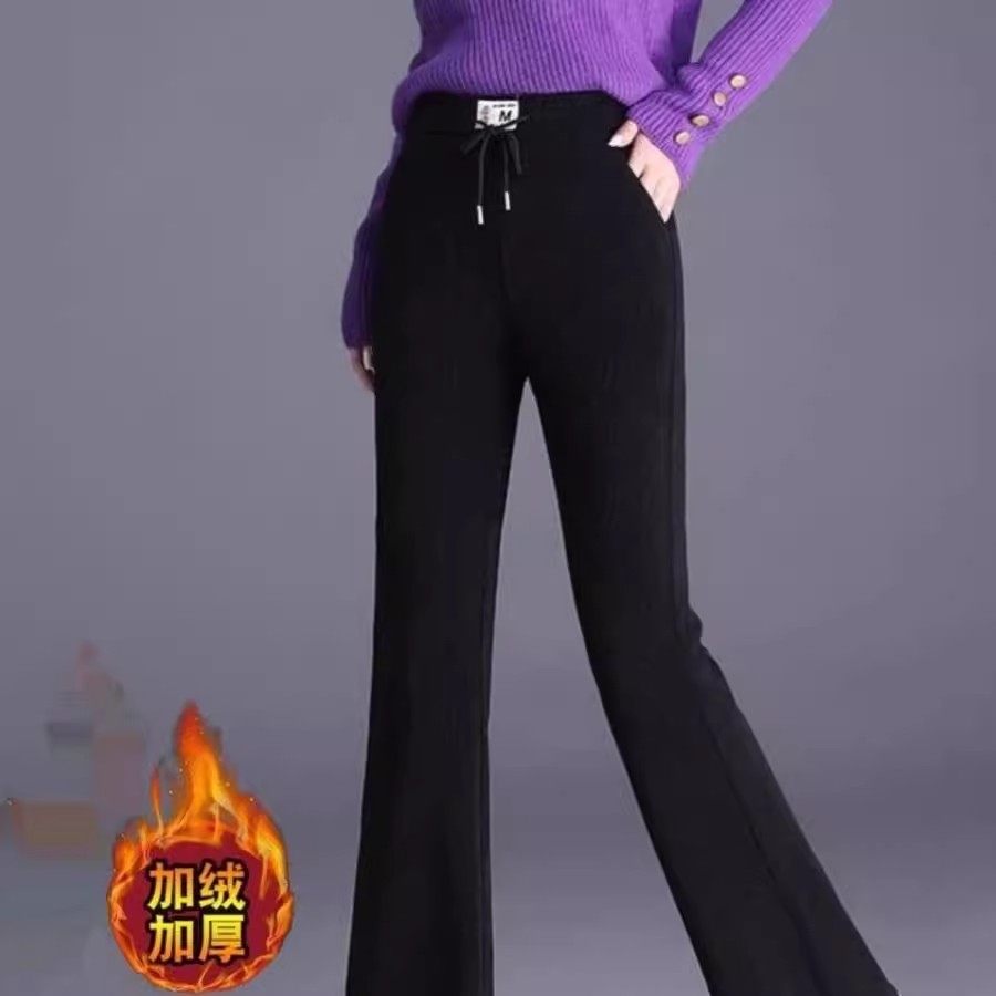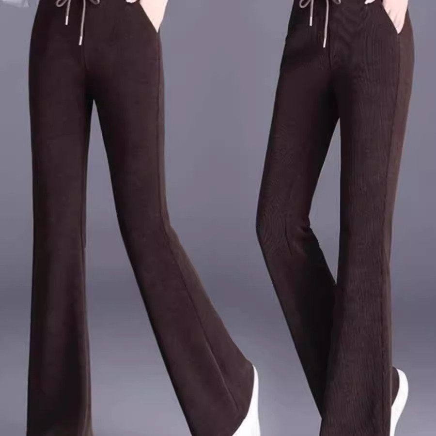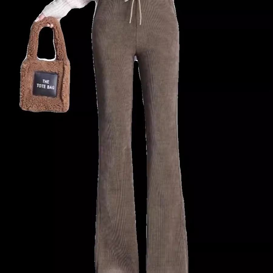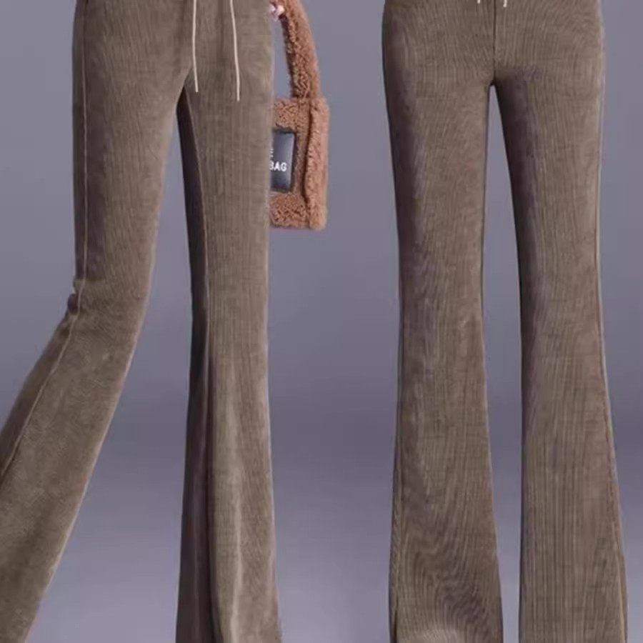加绒妈妈喇叭裤 中老年灯芯绒裤 子女春秋冬2024高腰显瘦雪尼尔长裤