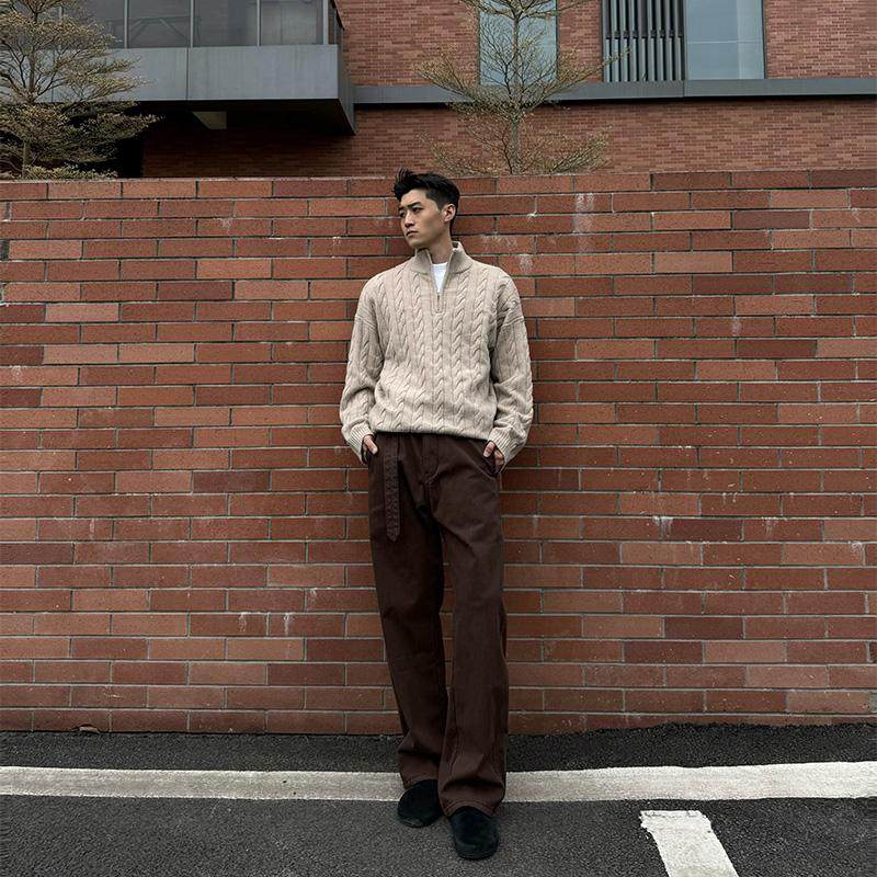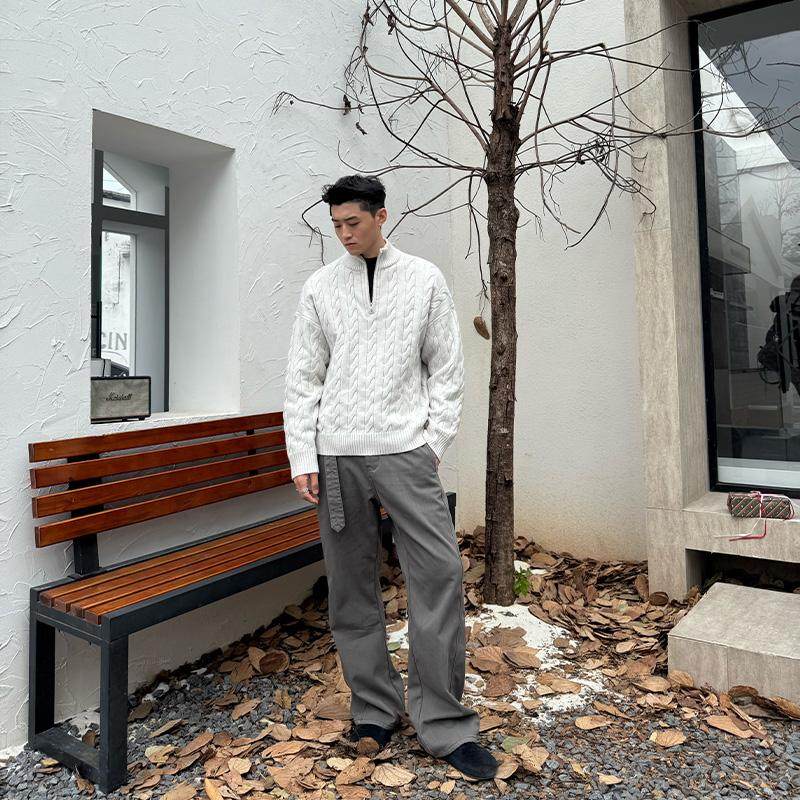 马术麻花纹粗针英伦半拉链毛衣 浮雕绵羊毛 ZOZOFOREST 3152