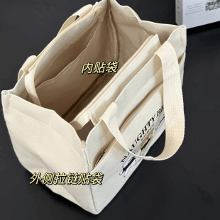 高颜值帆布手提包宝妈外出简约小巧立体拎包通勤加厚上班便当饭袋